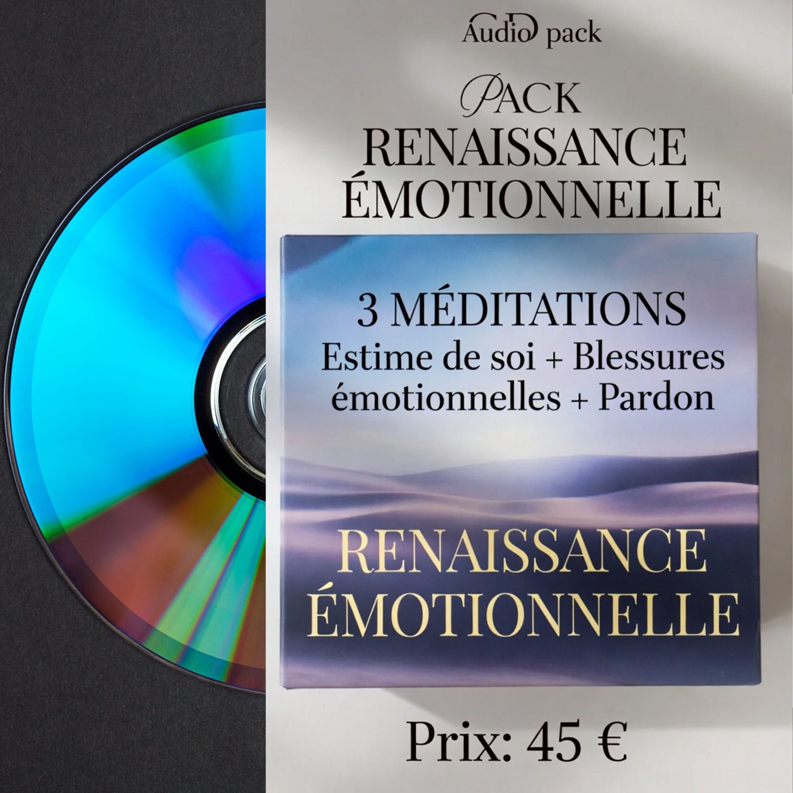 3 méditations (Estime de soi + Blessures affectives + Pardon) Prix : 45 €